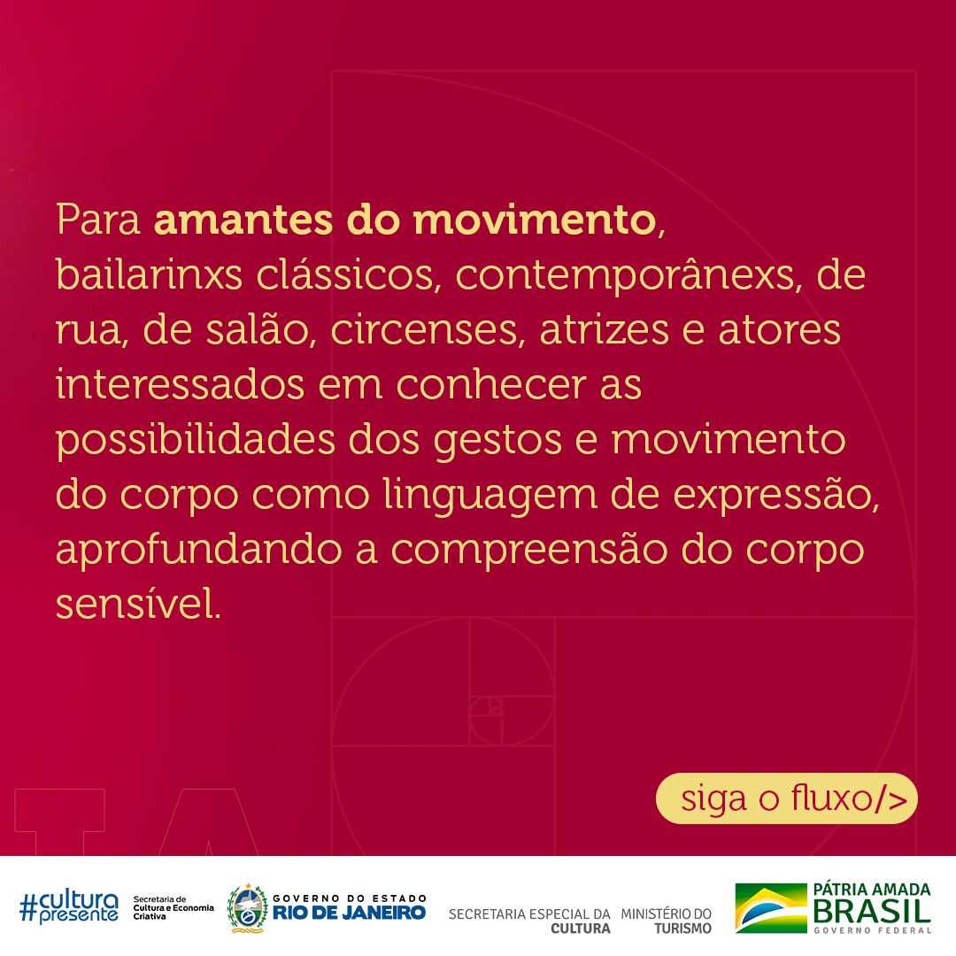 Amantes do movimento, amadores e profissionais: bailarinxs clássicos, contemporânexs, de rua, de salão, circenses, atrizes e atores interessades em conhecer as possibilidades dos gestos e movimento do corpo como linguagem de expressão, aprofundando a compreensão do corpo sensível.